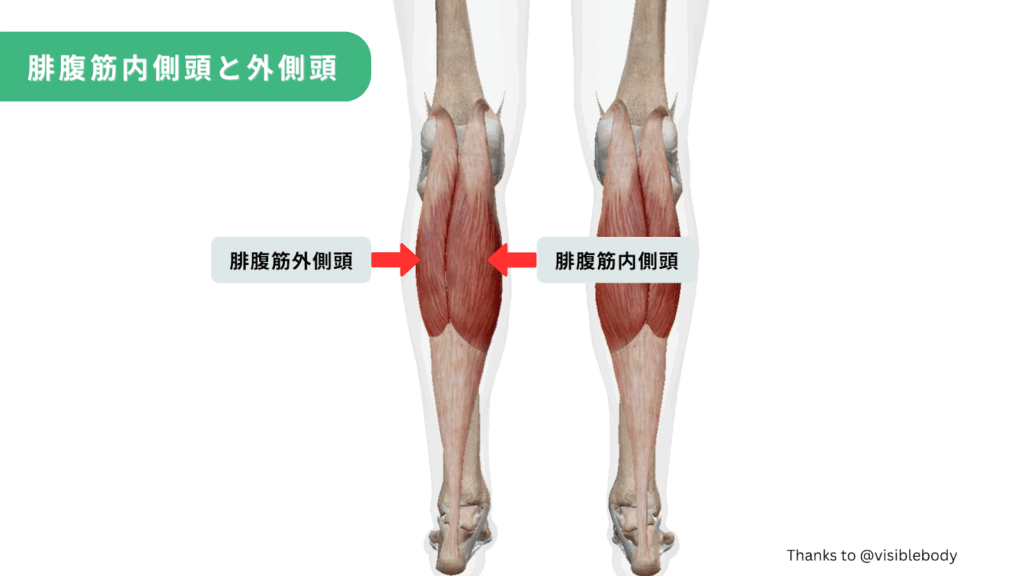 実は、「腓腹筋」は2つに分かれていて、「腓腹筋内側頭」「腓腹筋外側頭」という2つの部分から構成されています。