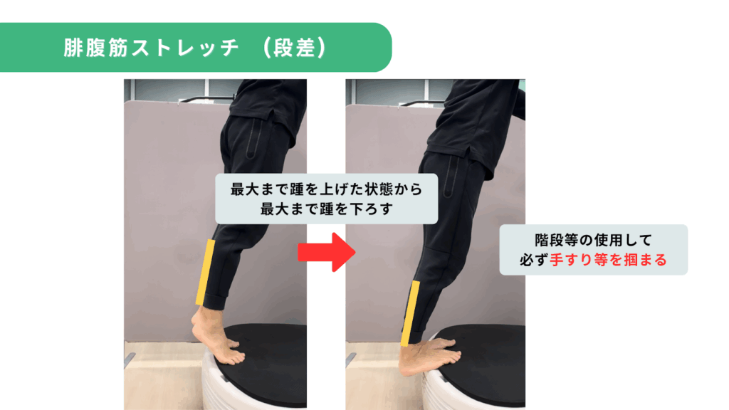• ②最大まで踵を下ろして、ふくらはぎが伸びているのを感じる。