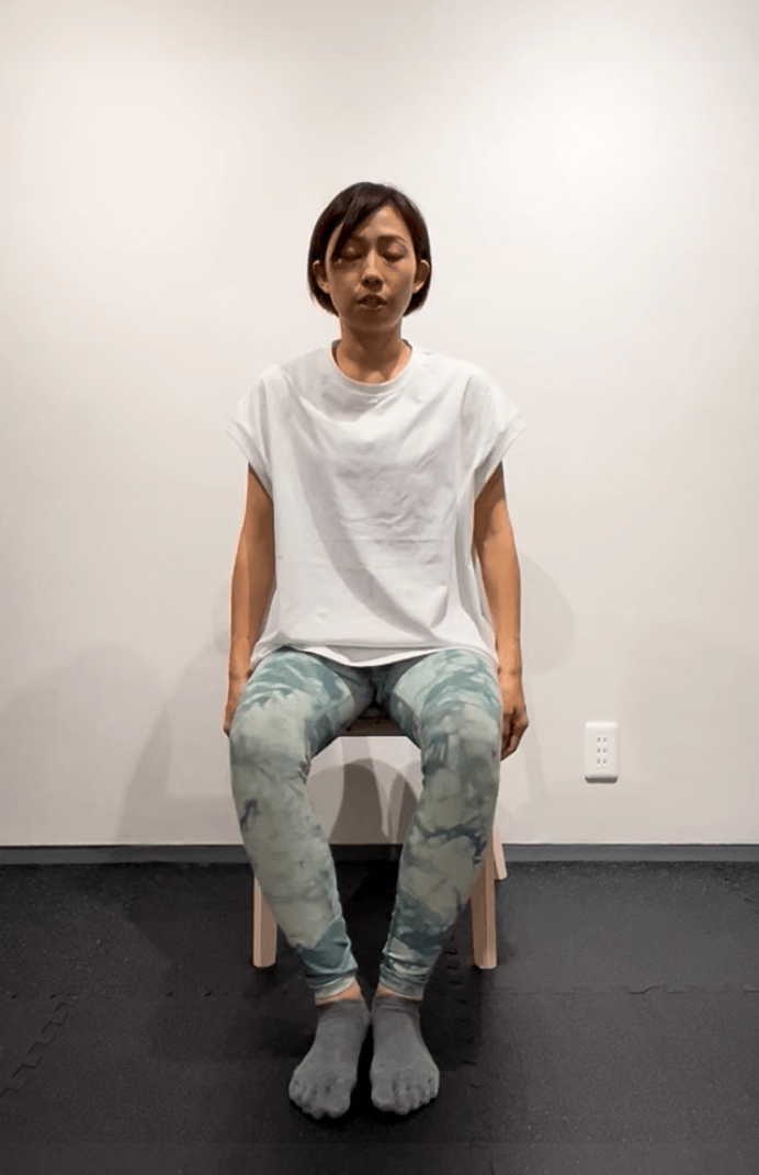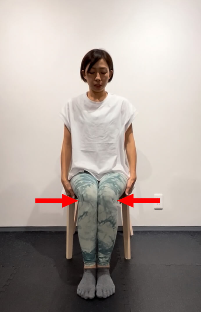 ②膝を開いた状態から膝を閉じて5秒間キープして力を抜く(10回程度繰り返す)