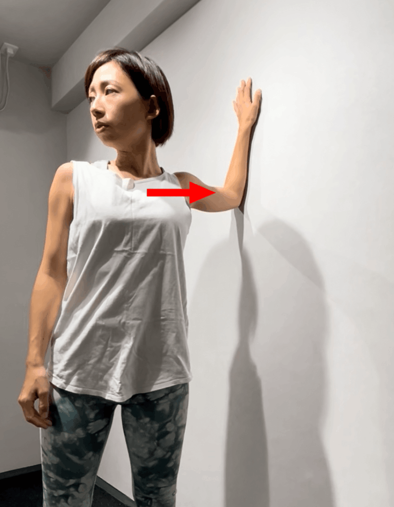 肩こりの原因は背中ではなく胸の前の硬さが原因となっていることが多いので胸の前をストレッチしていきましょう。