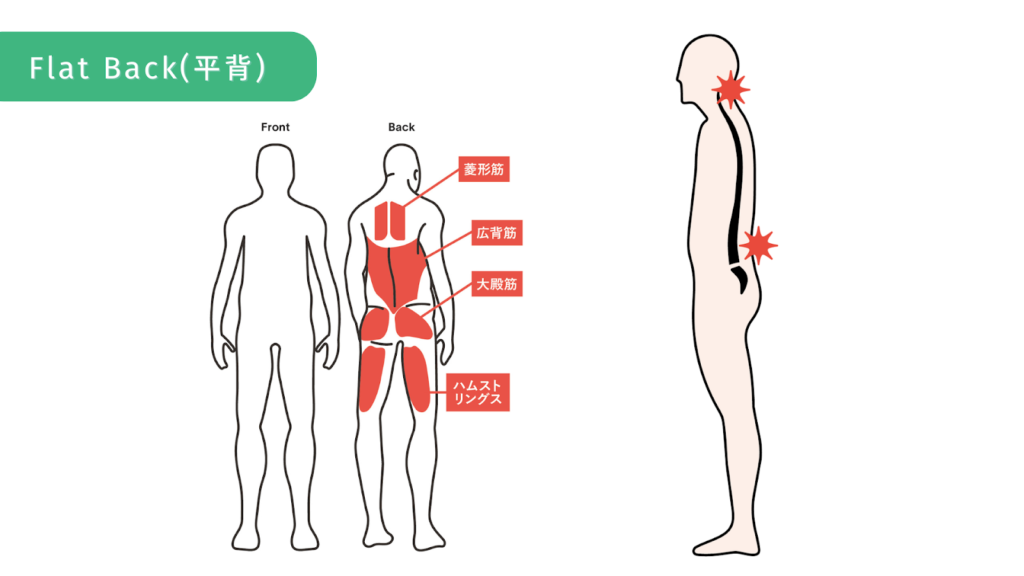 ◉全体的に背骨の弯曲が少ないFlatBack姿勢